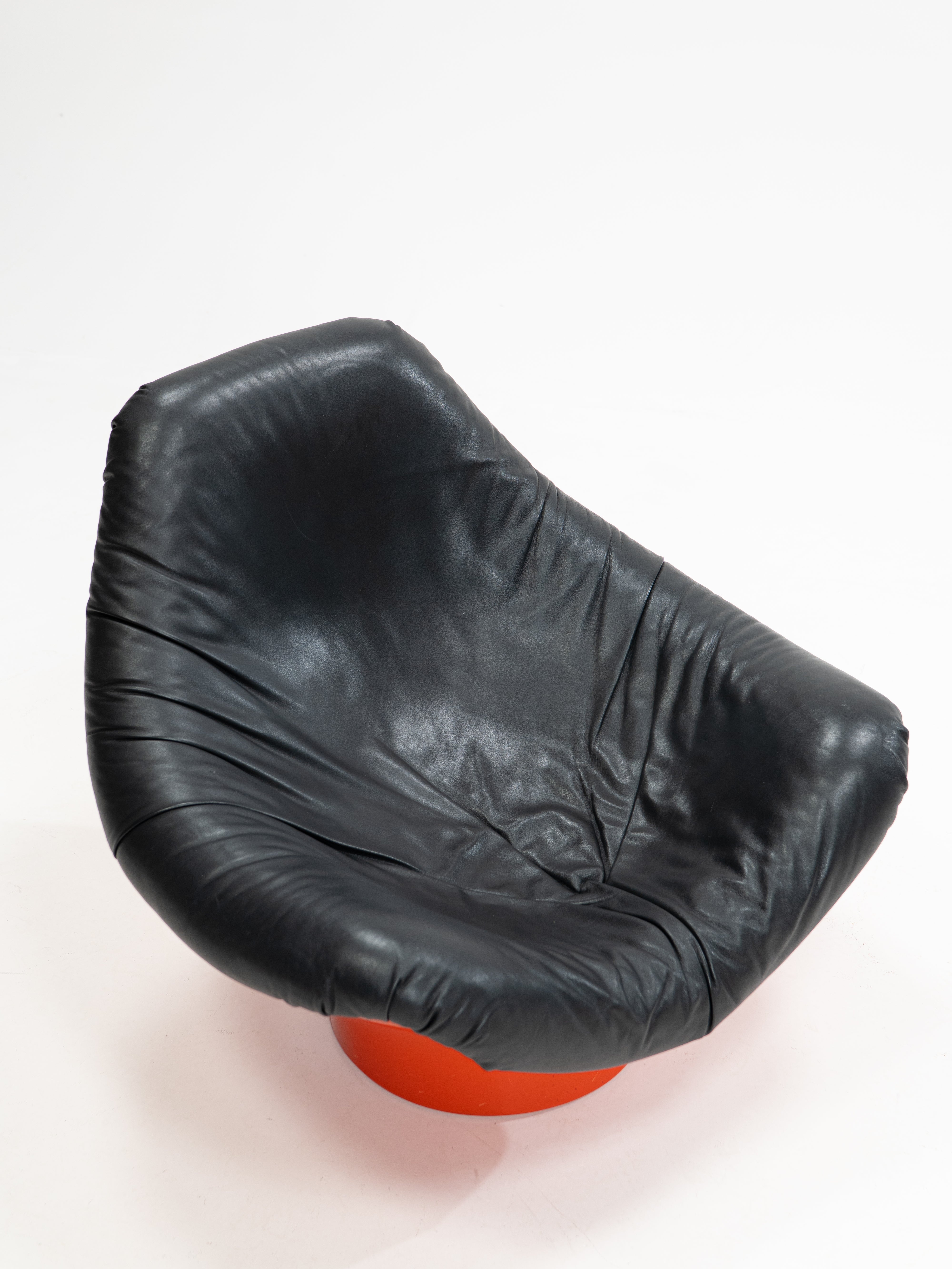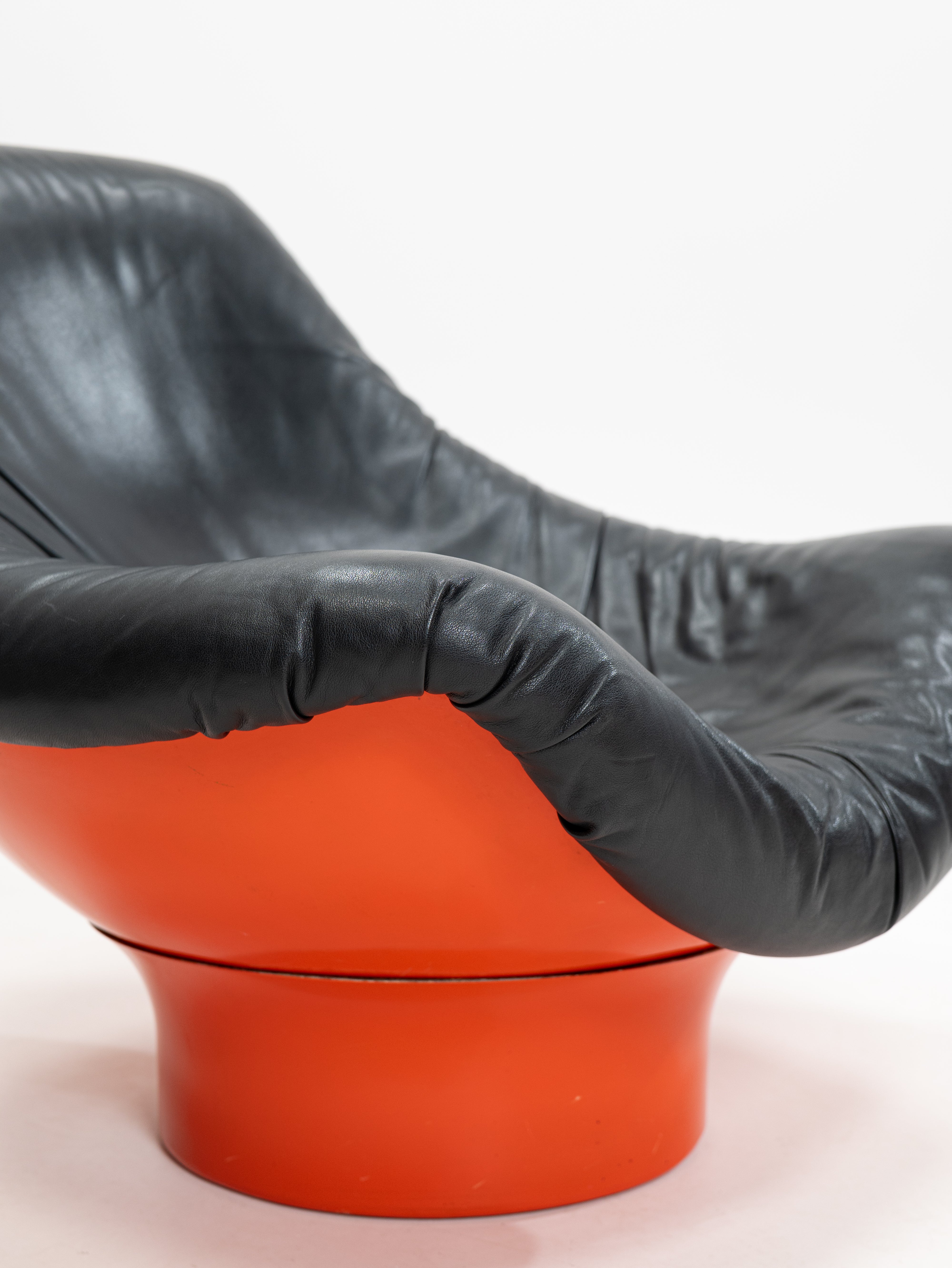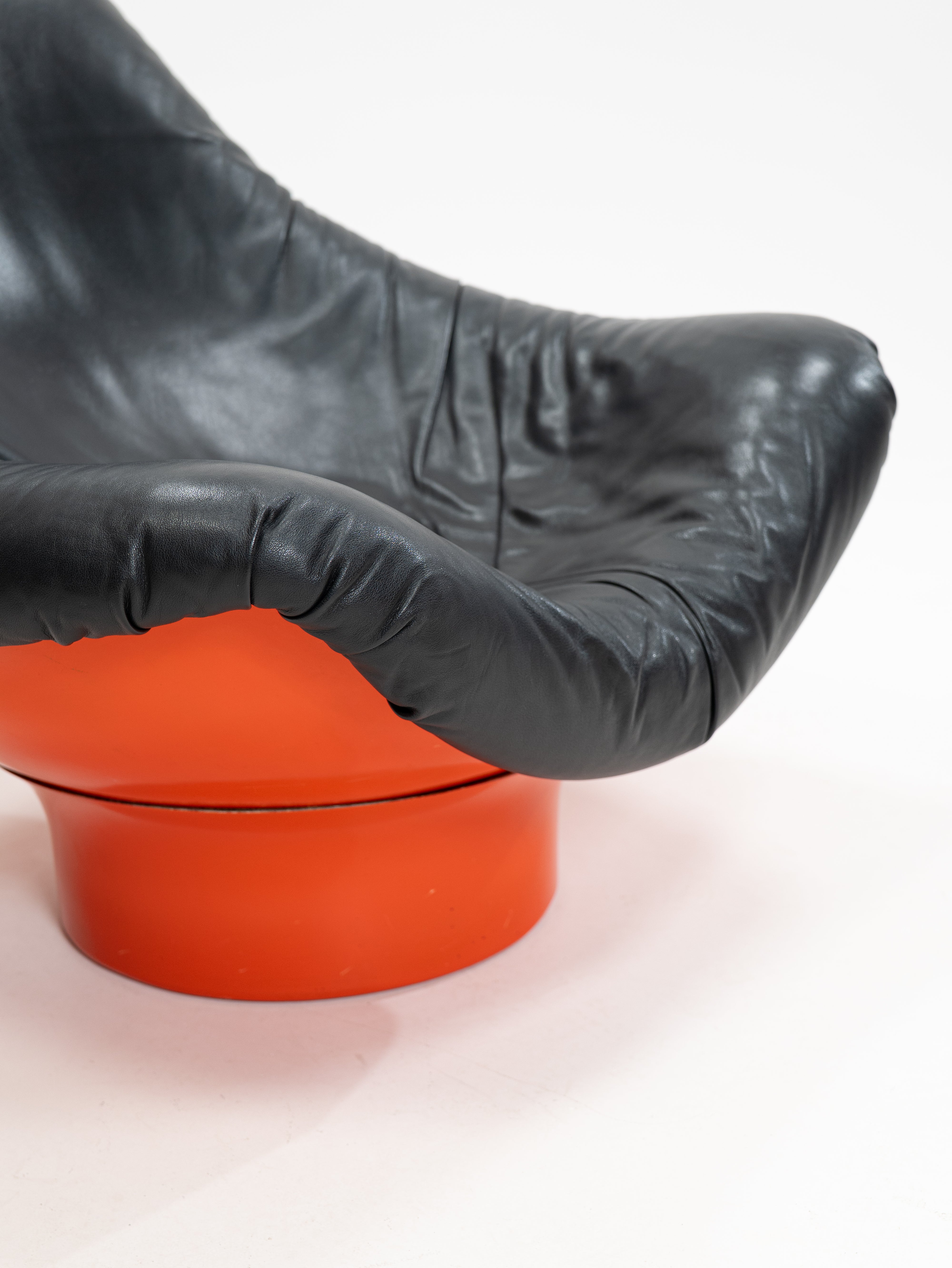 - Crafted with luxurious leather upholstery, these chairs promise both comfort and style. - The distinctive plastic base adds a touch of futuristic flair, characteristic of the 1960s design ethos.