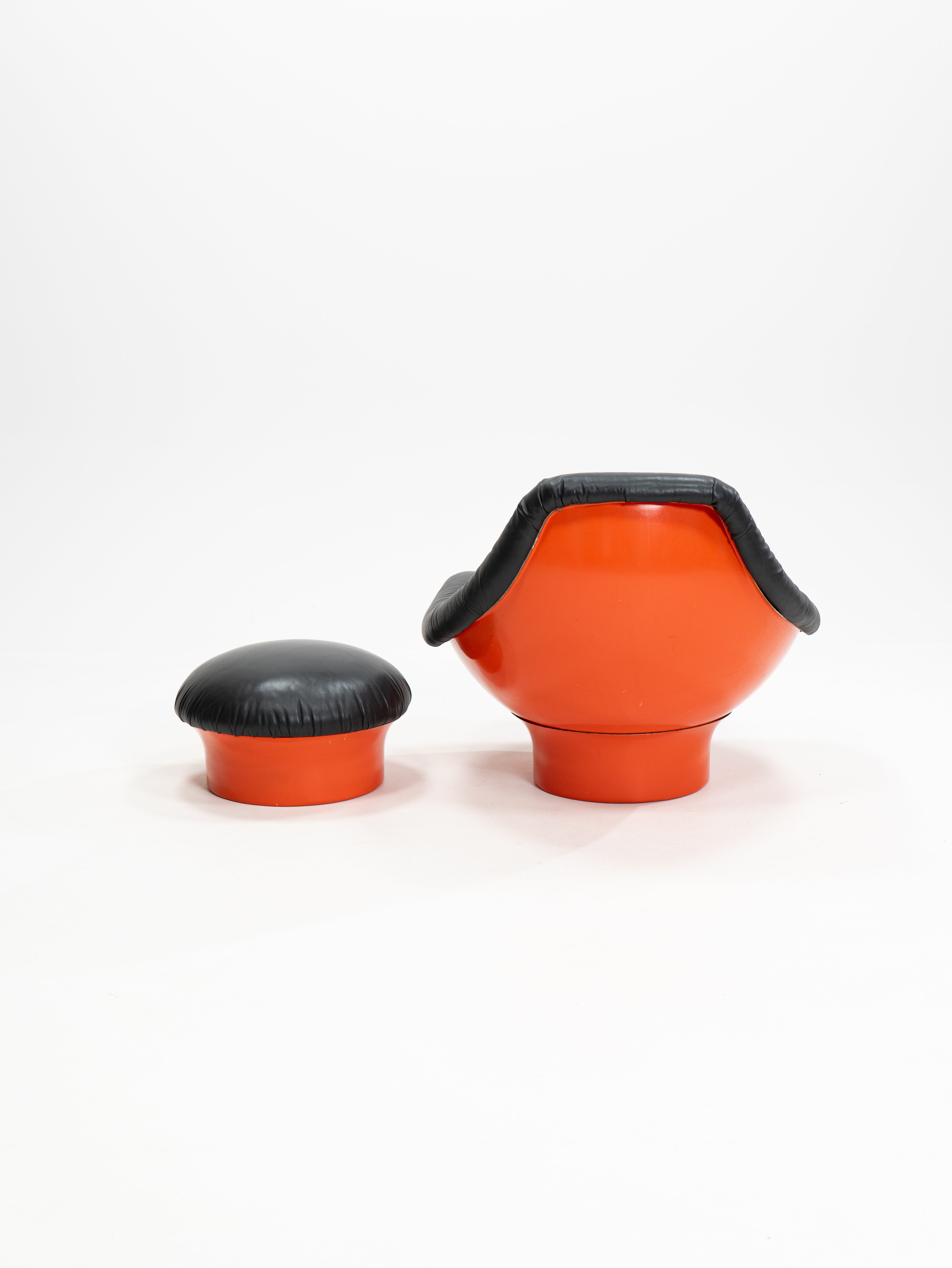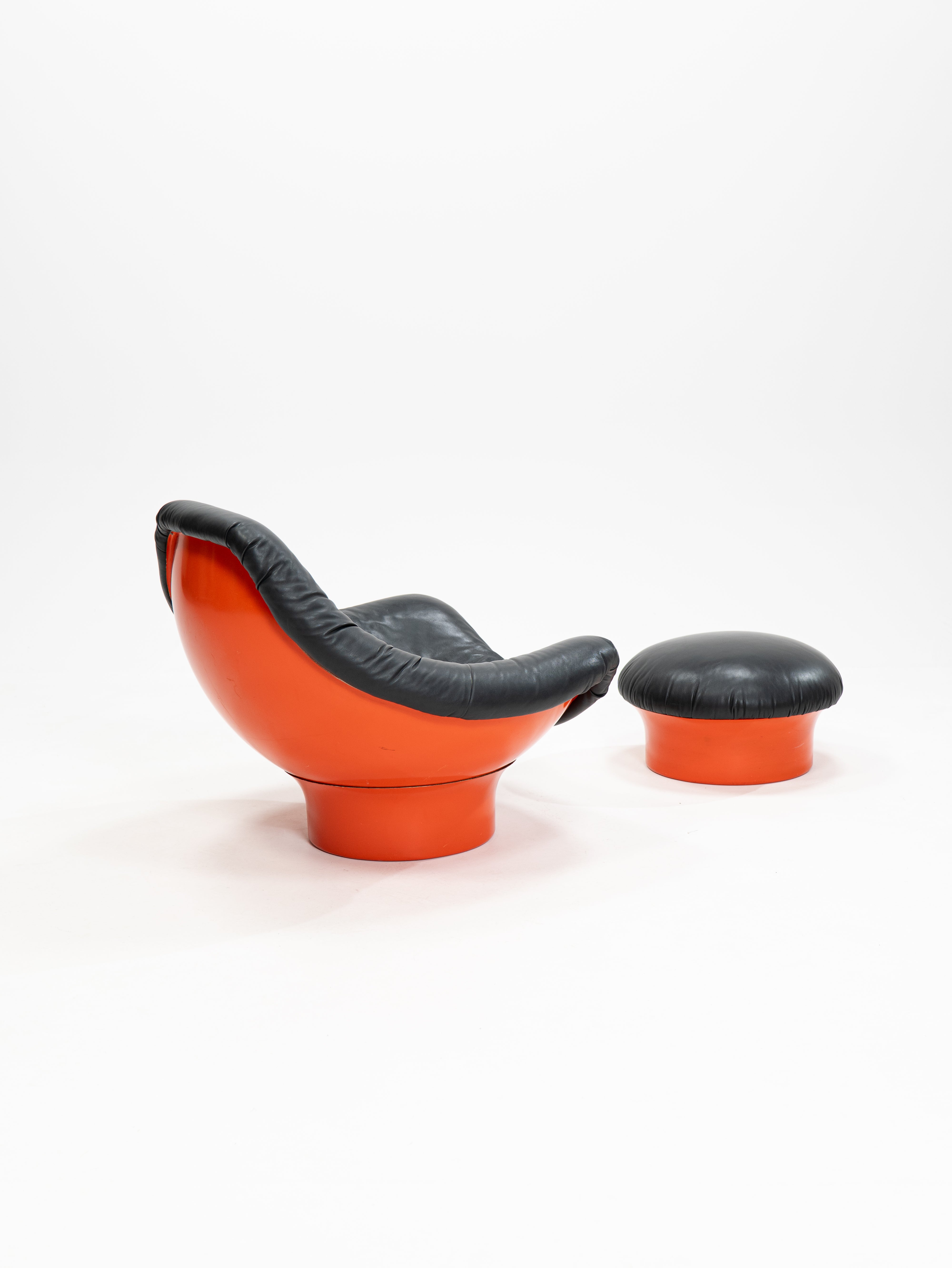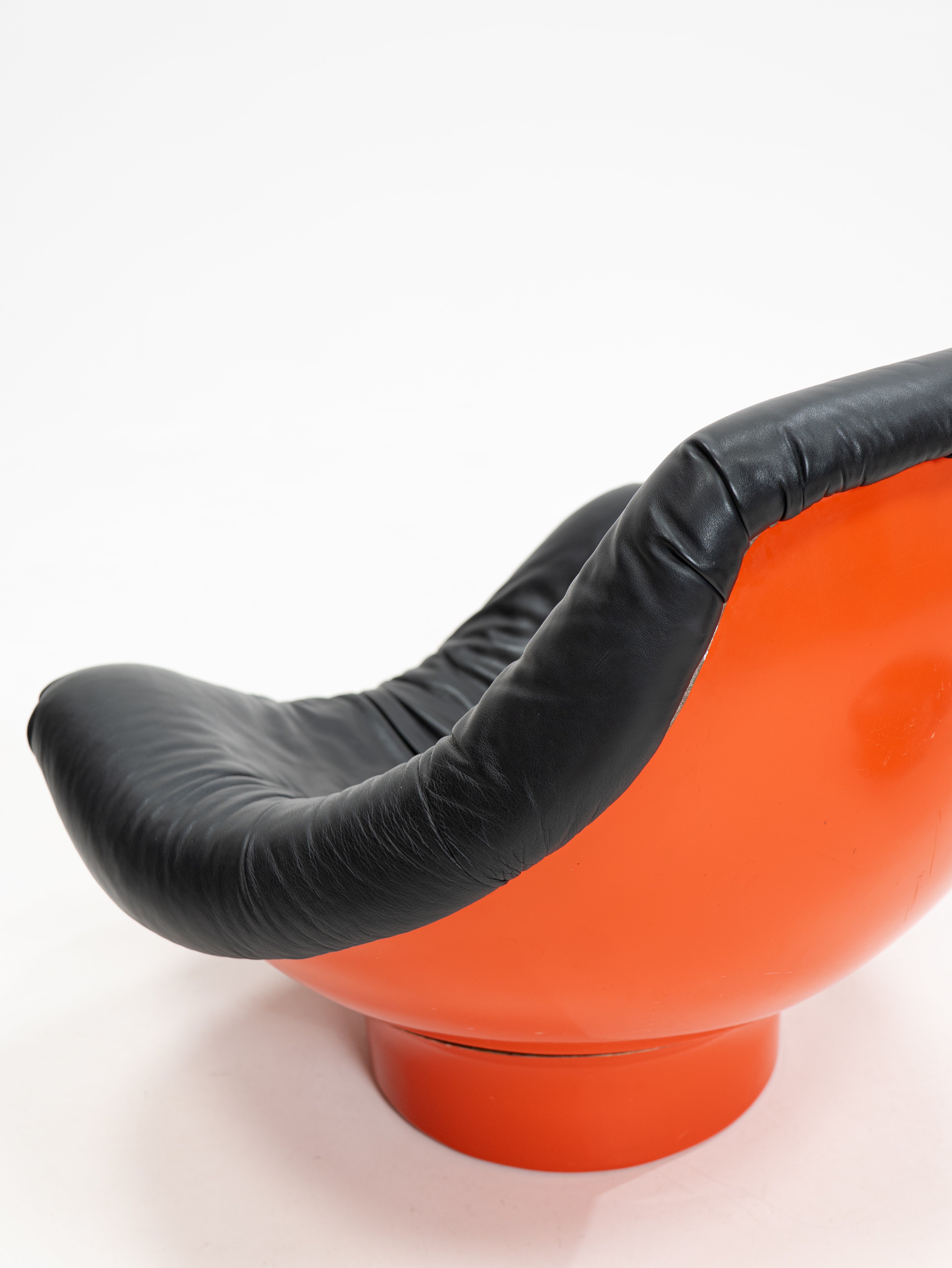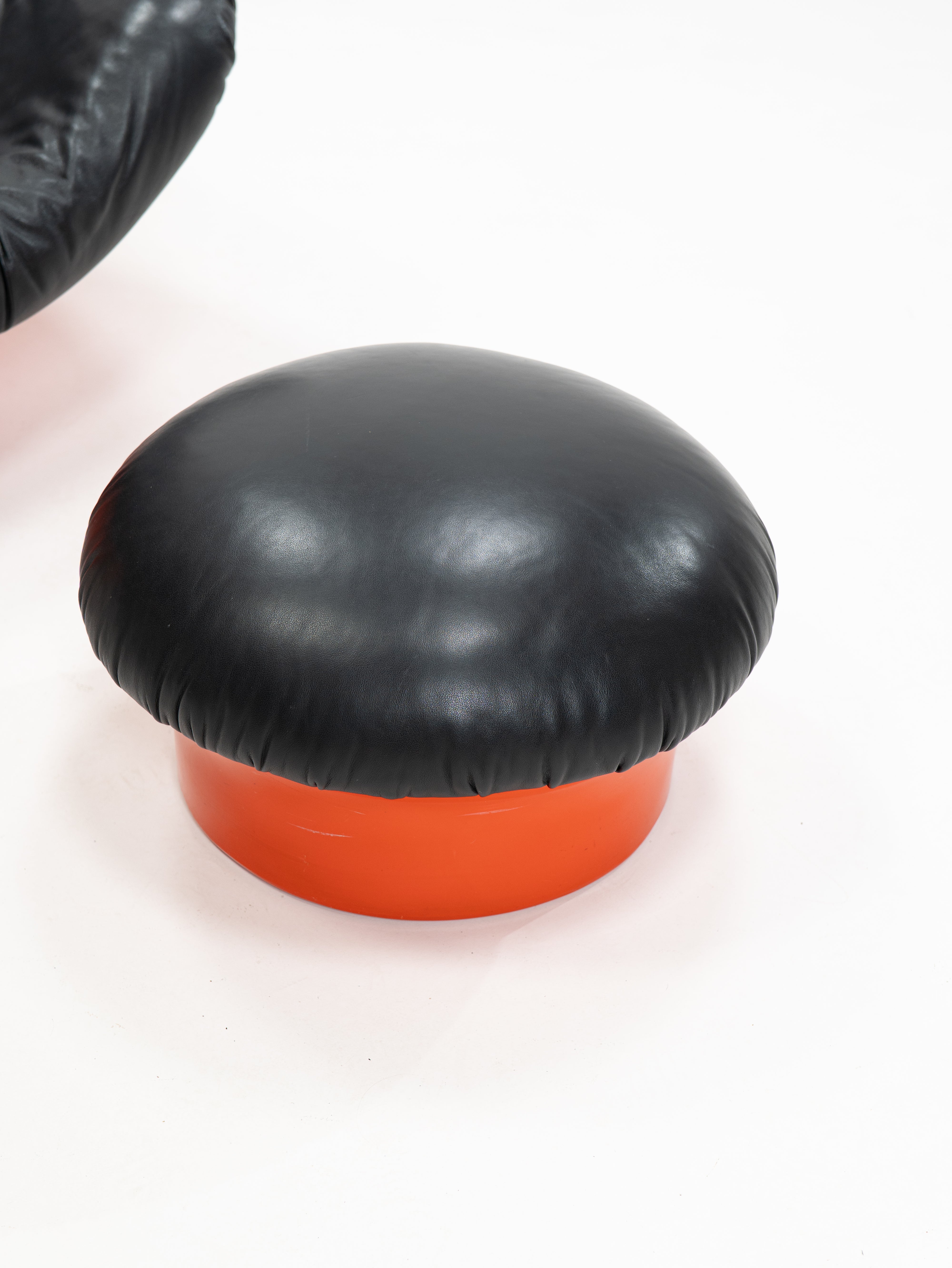 - Crafted with luxurious leather upholstery, these chairs promise both comfort and style. - The distinctive plastic base adds a touch of futuristic flair, characteristic of the 1960s design ethos.