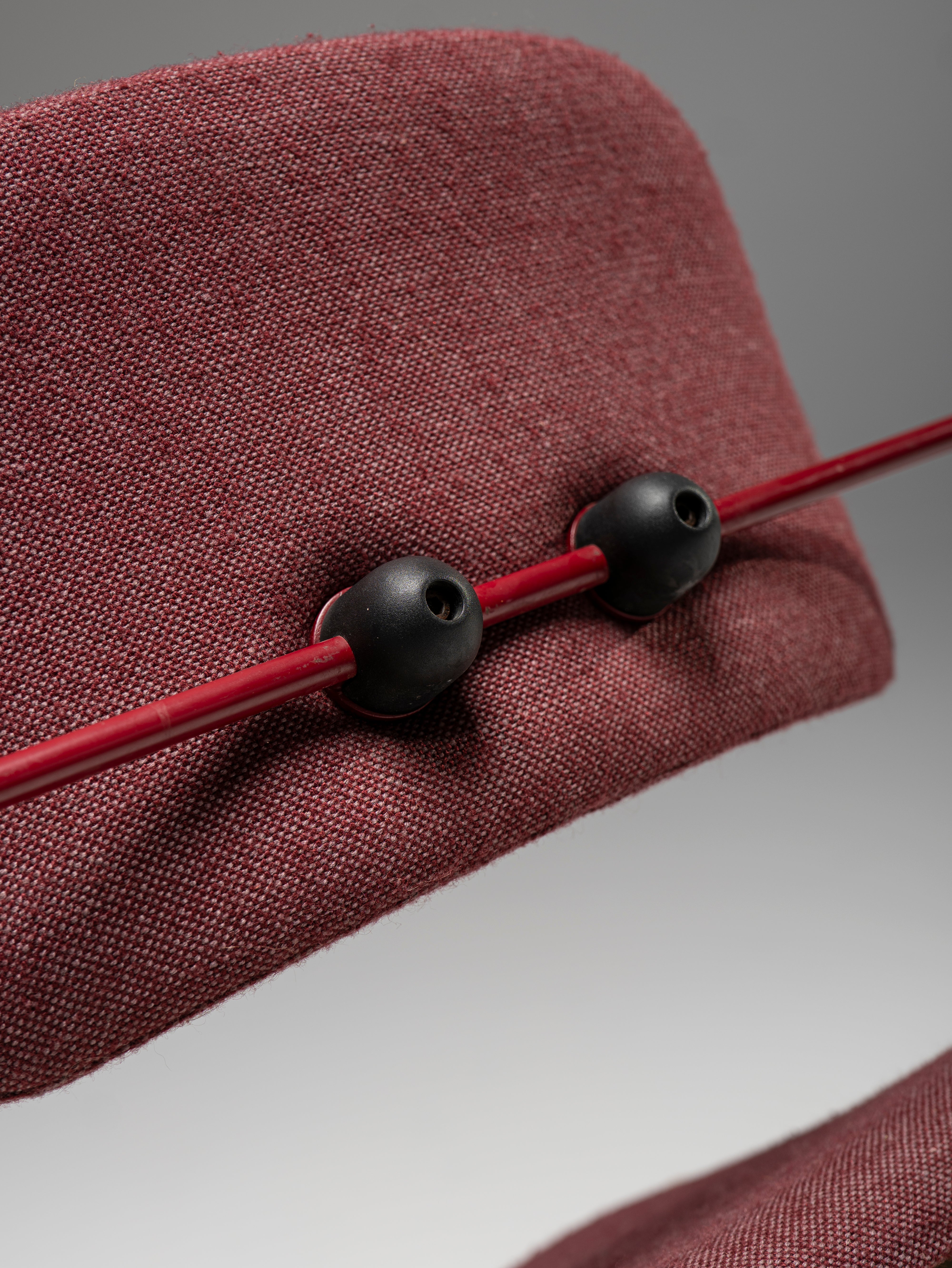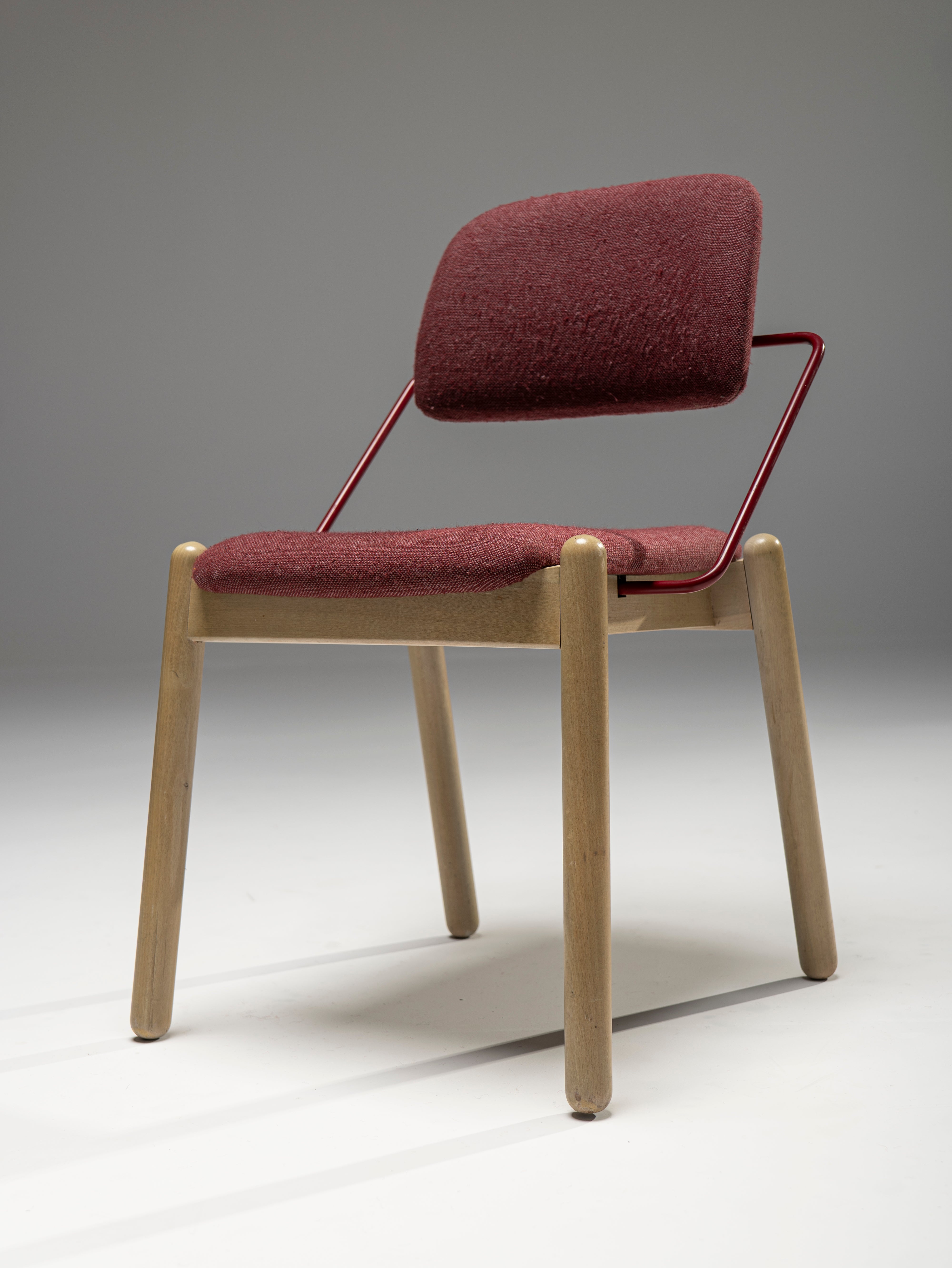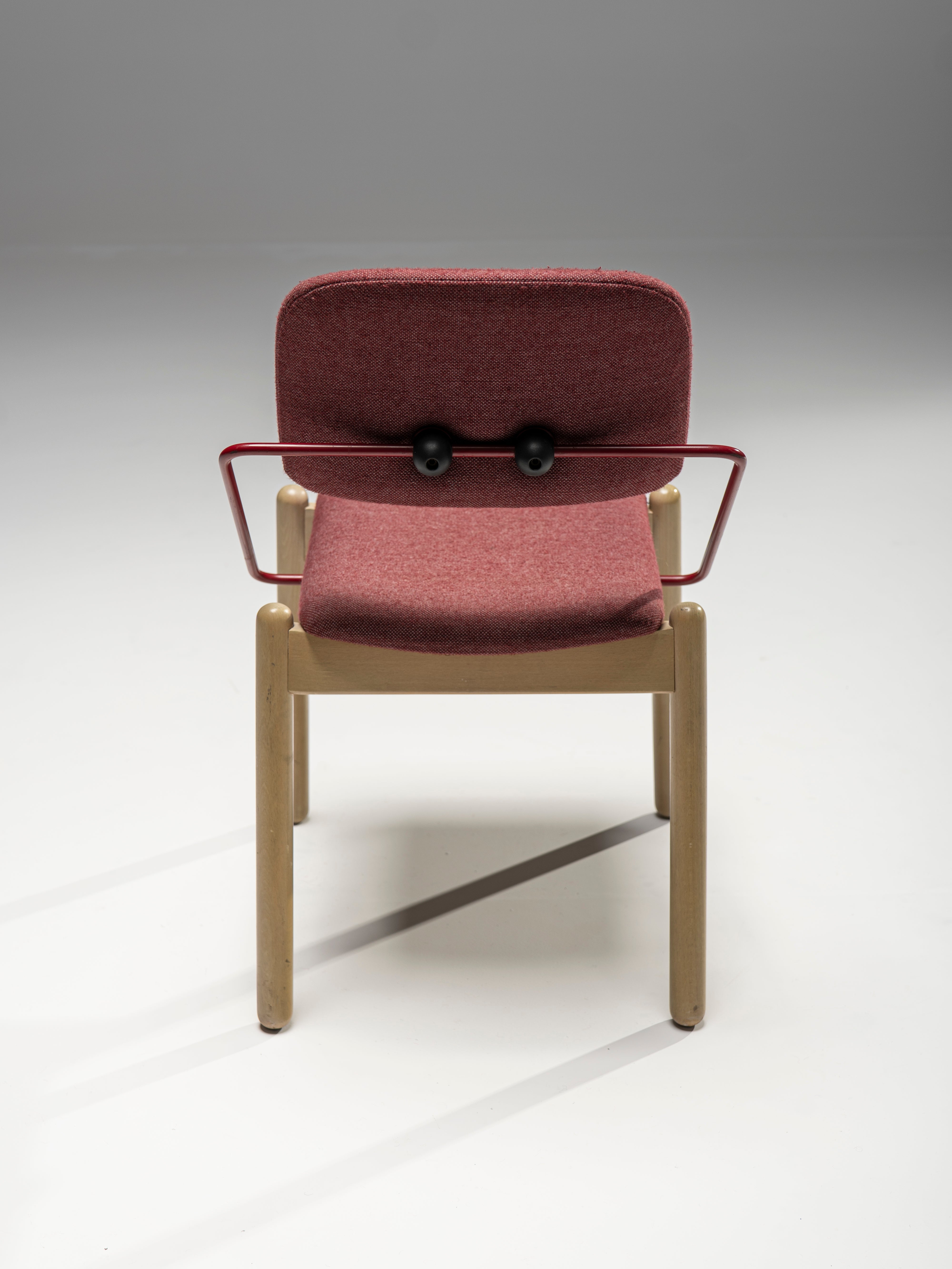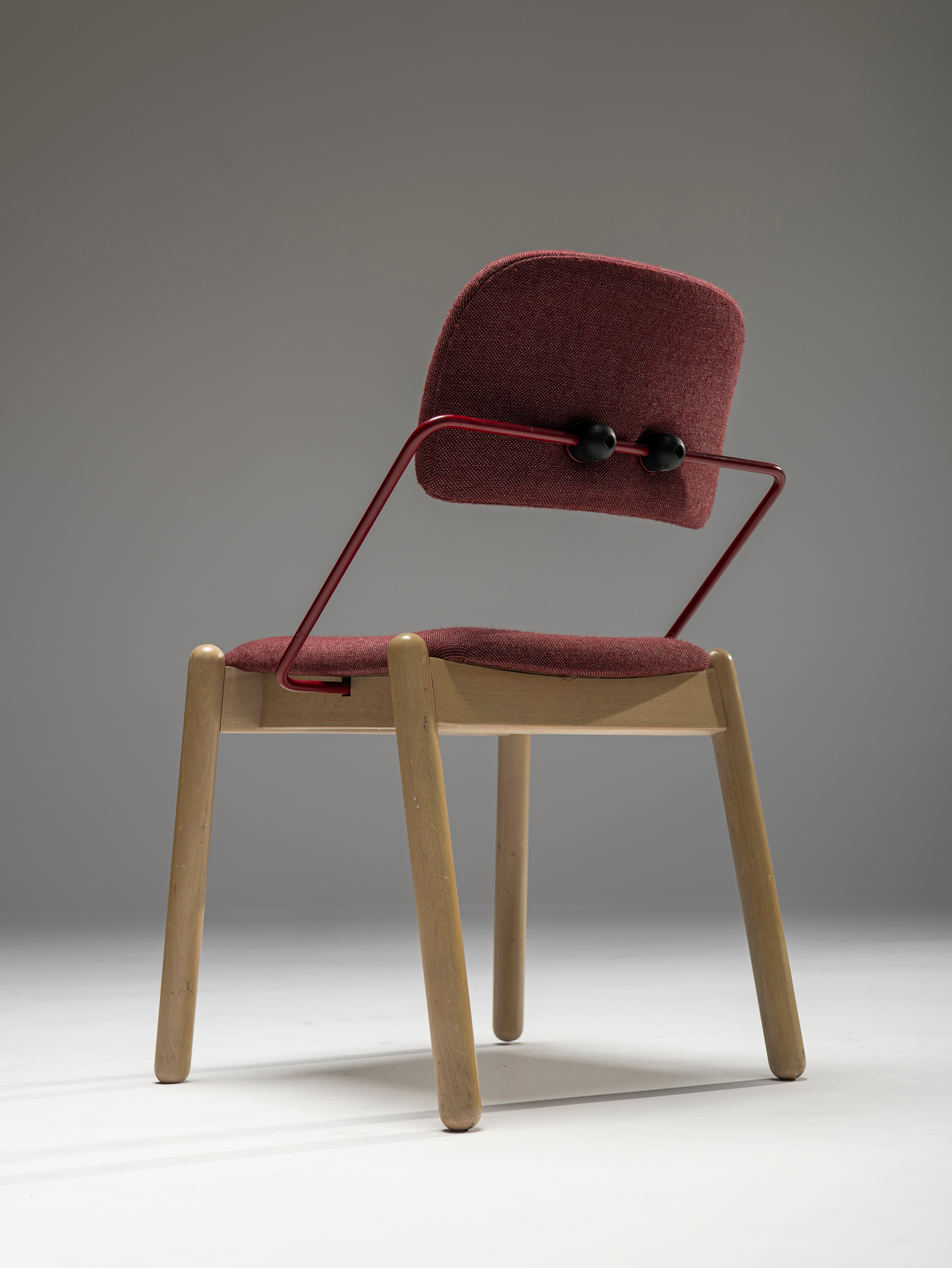 A solitary-looking piece of design, it is clear from a first glance that this is an unorthodox chair. While the legs' design seems almost childish, with the thick, rounded shapes involved, the upper part seems quite down-to-earth, and not at all out of place in an office, until you notice the system devised to hold up the backrest, that is. The unexpected solution devised by Wiesner-Hager seems strange, but works wonderfully, as the metal bits which hold up the backrest go down under the seat into a metal chassis. The result is a sturdy, comfortable chair that adjusts its shape according to whoever's sitting in it, as any good chair should.