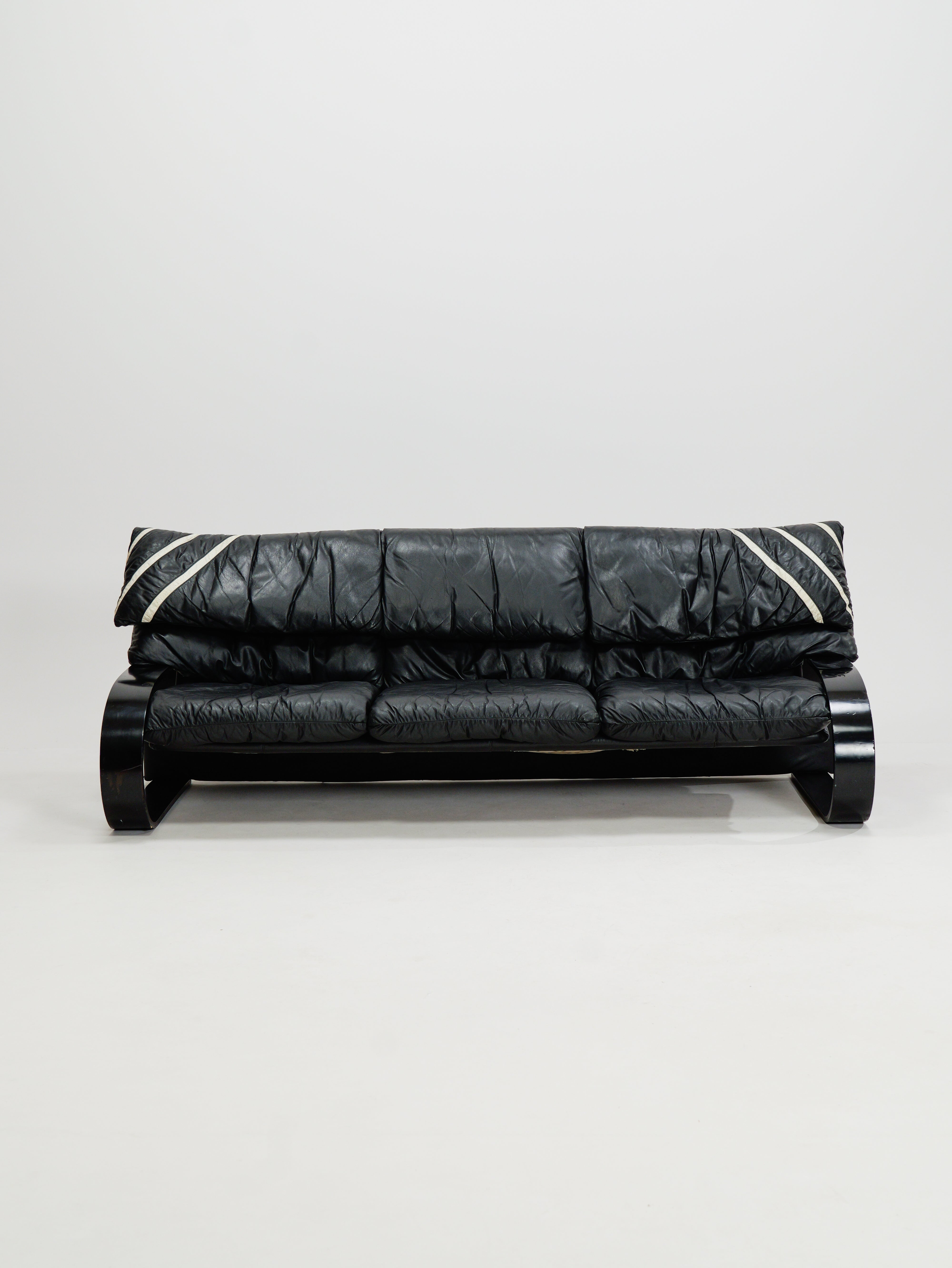 Italian Leather Three Seater Sofa by Coralba,1980s