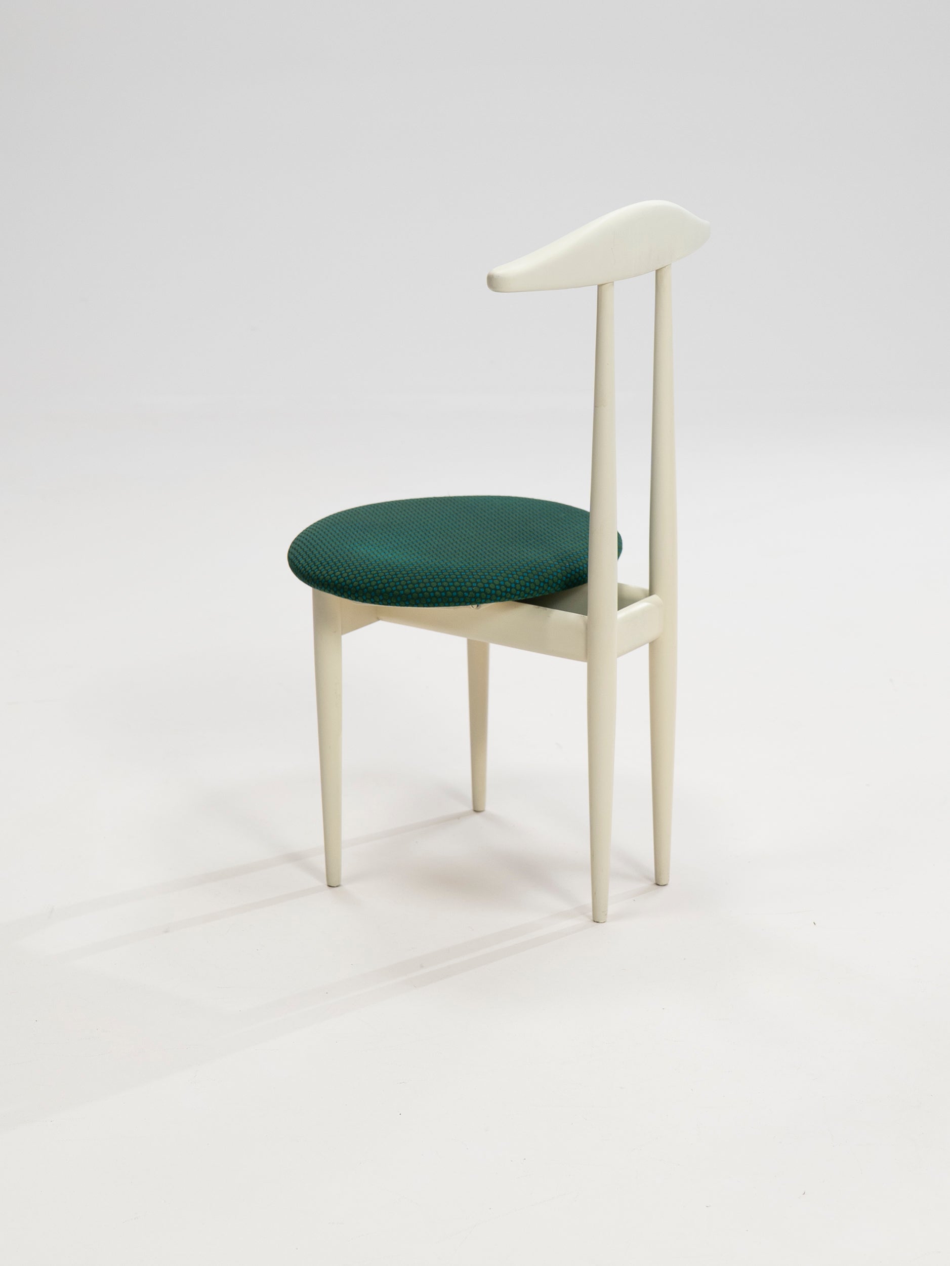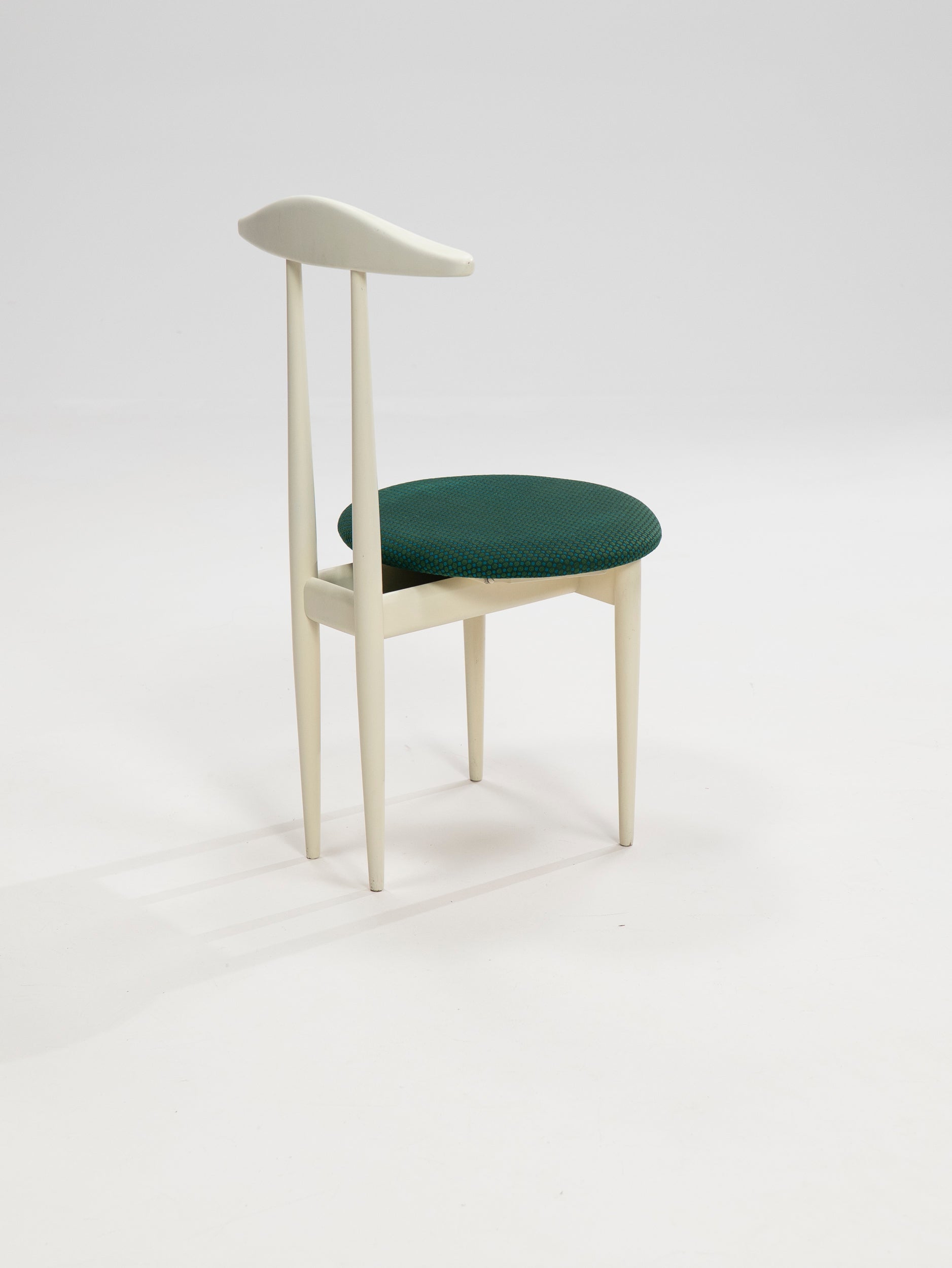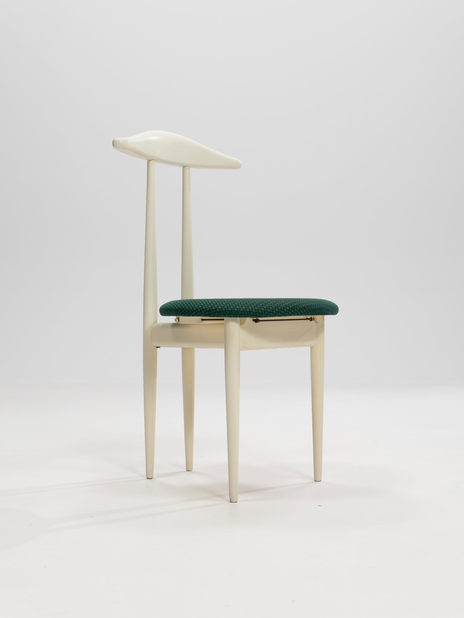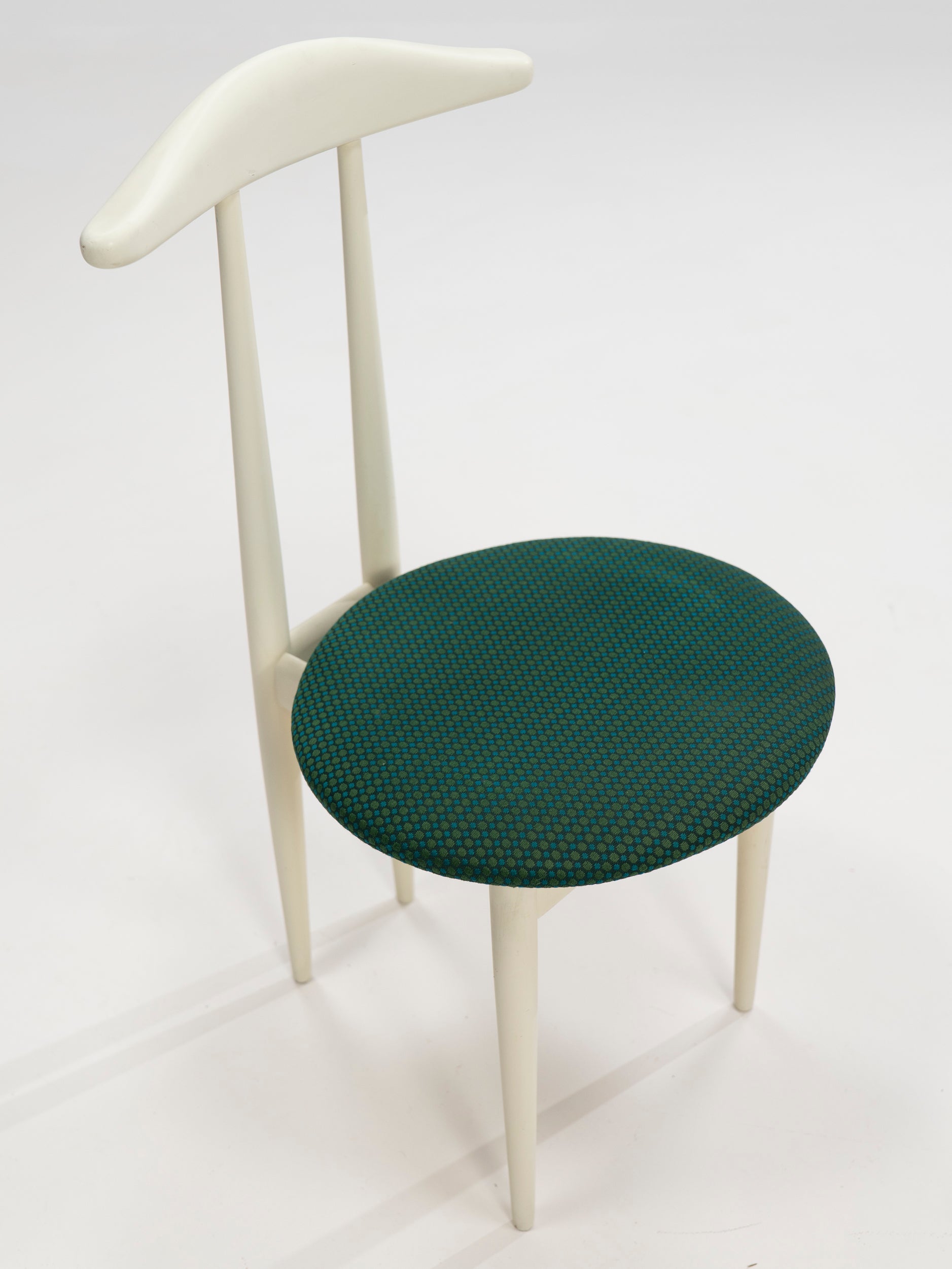 What's a valet chair, you might be wondering. Well, the backrest's shape should give you the first hint - it's a coat hanger. There you can hang you coat or shirt that's not quite in need of washing, nor is it clean enough to go back in the closet. Once you lift up the seat and turn that trapezoidal bit of wood towards you - that there holds your pants, folded once and set there to be used the next day. Maybe there's even more ways to use it than we were able to think up, we invite you to give it a go. Last, but not least, one can also use this valet chair for sitting.