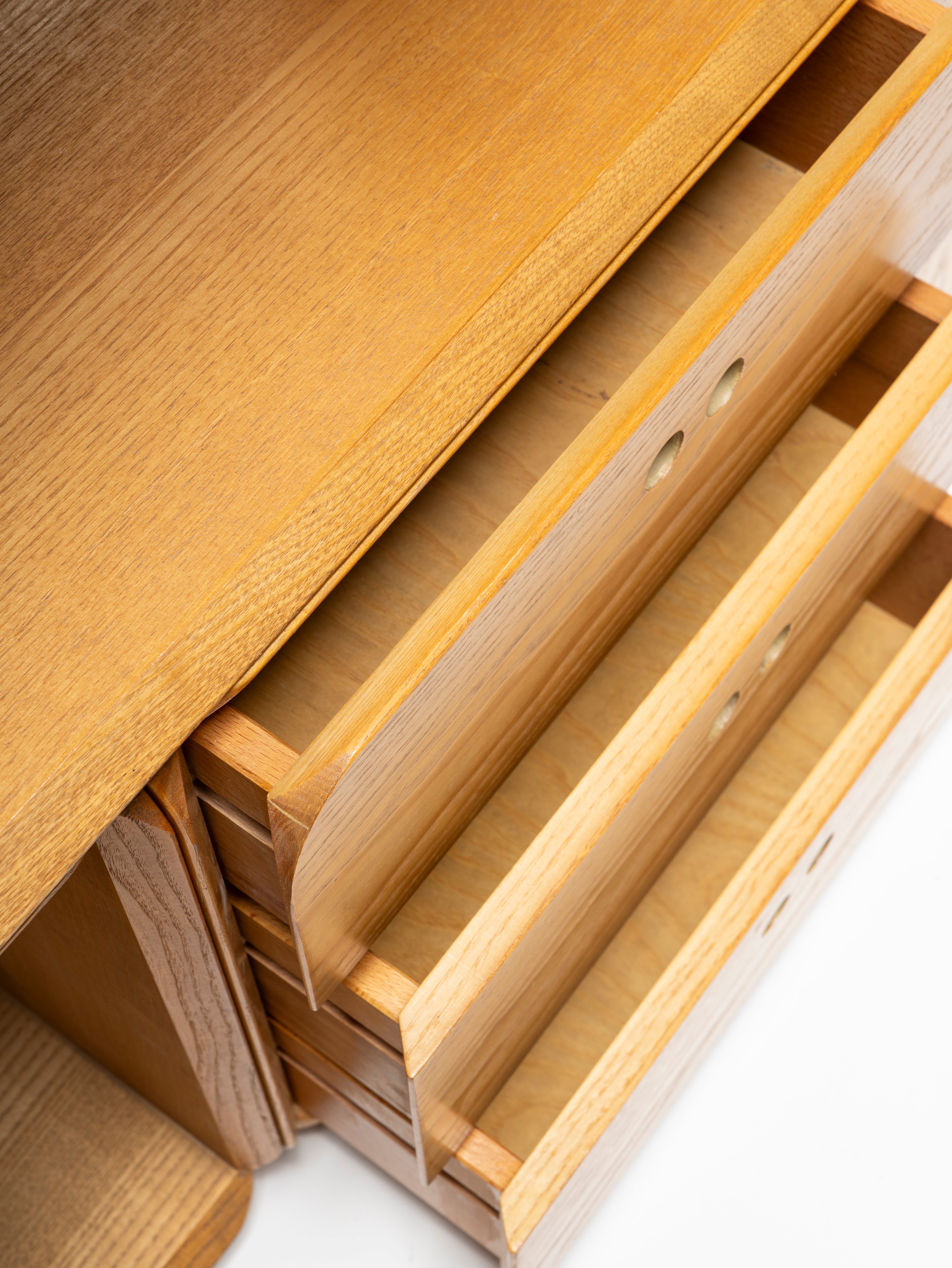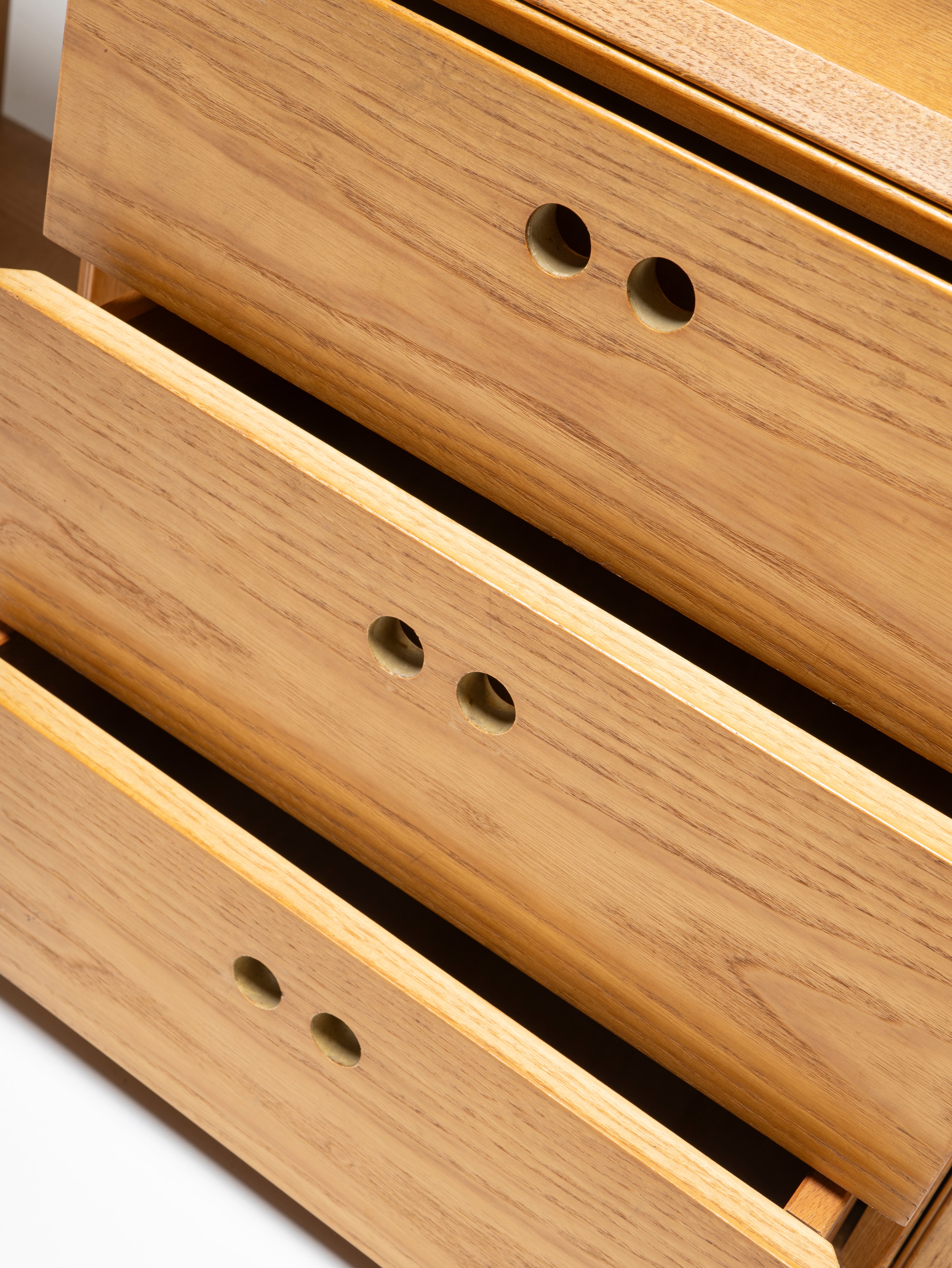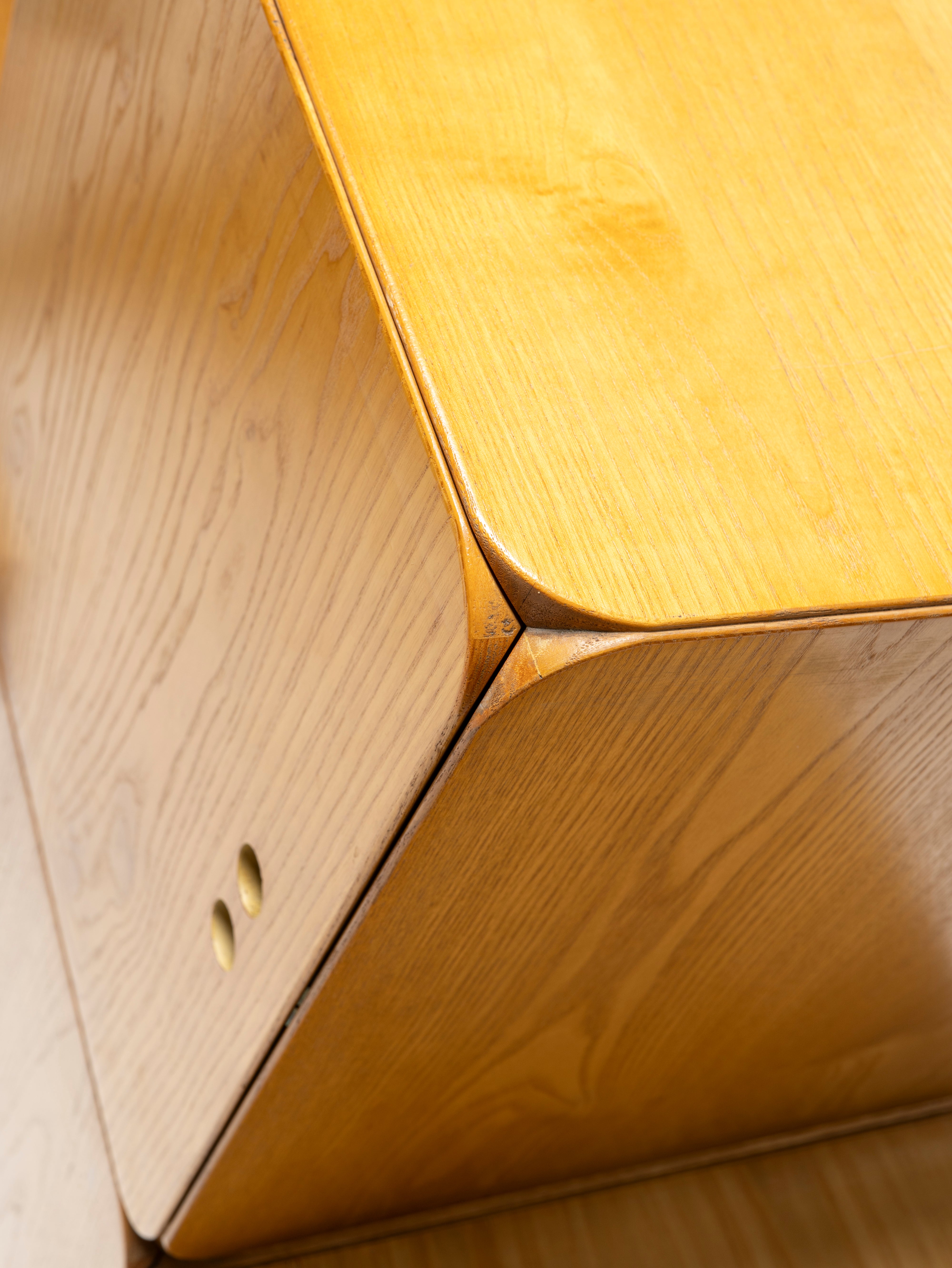 Derk De Vries' beautifully designed Samara collection lets you assemble it according to your needs and wants, using the square and rectangular modules for both storage and display. In light-coloured wood, with masterfully done round corners and bevelled edges, this playful modular wall unit brings a serene presence to any space.