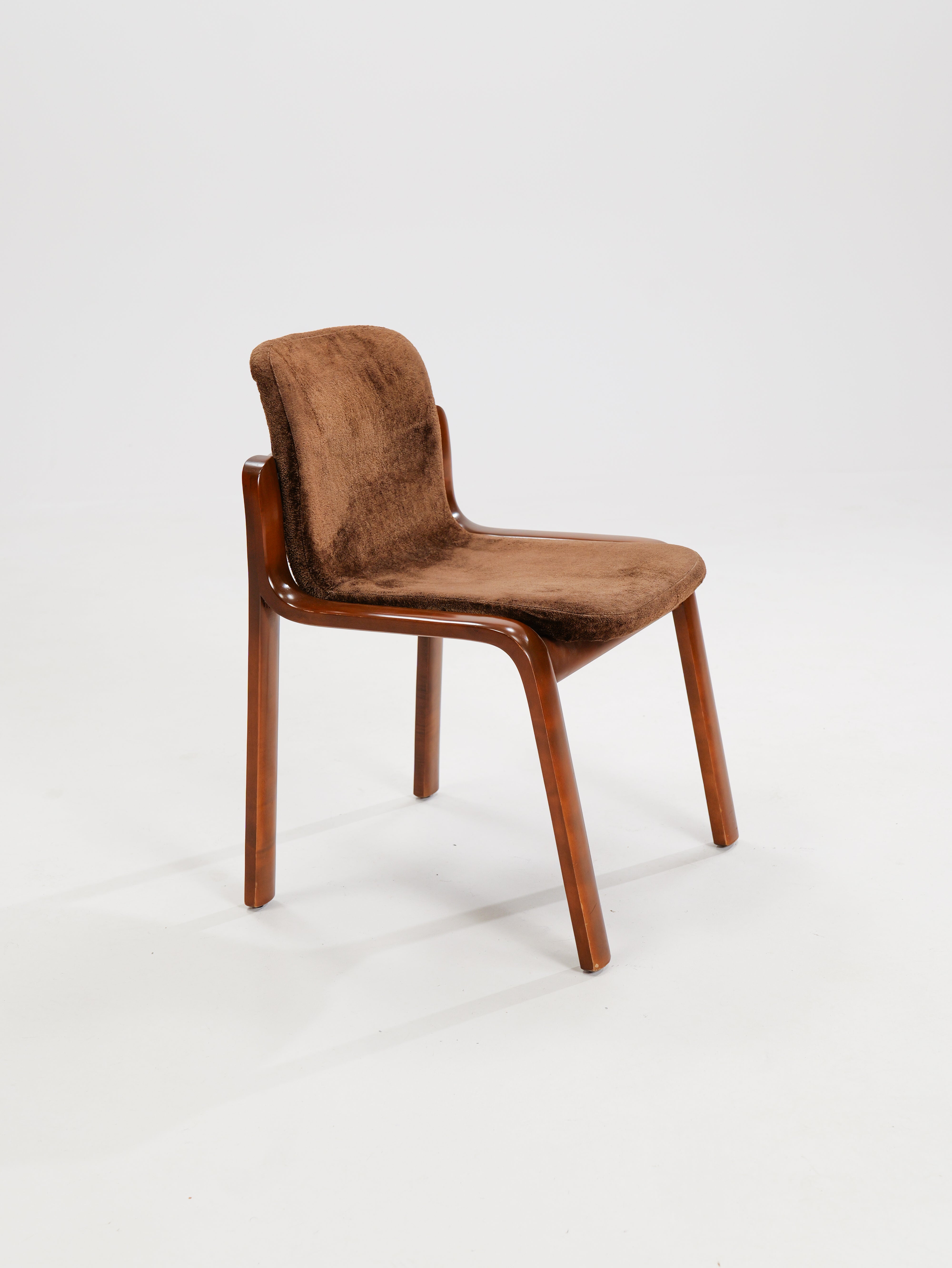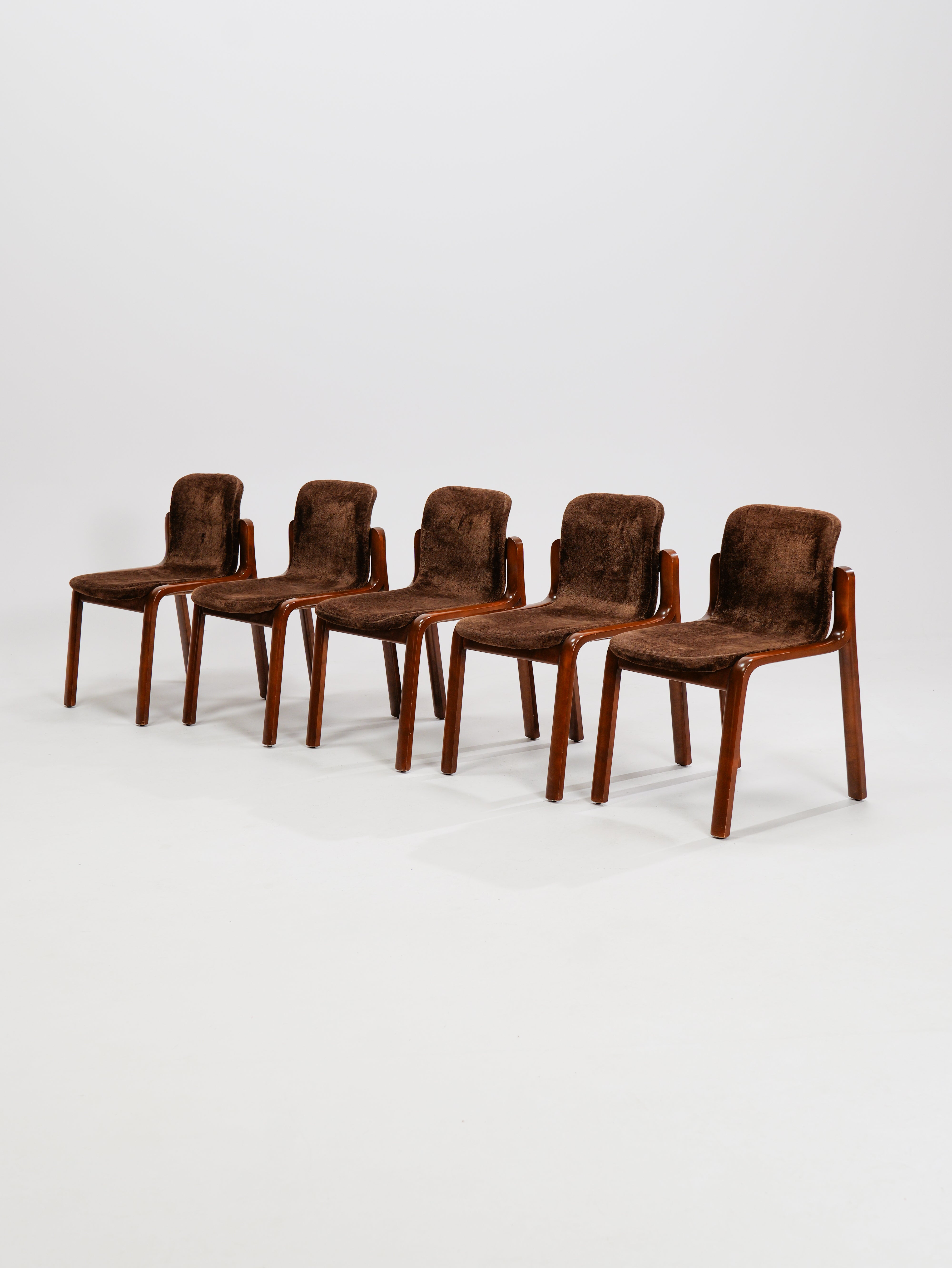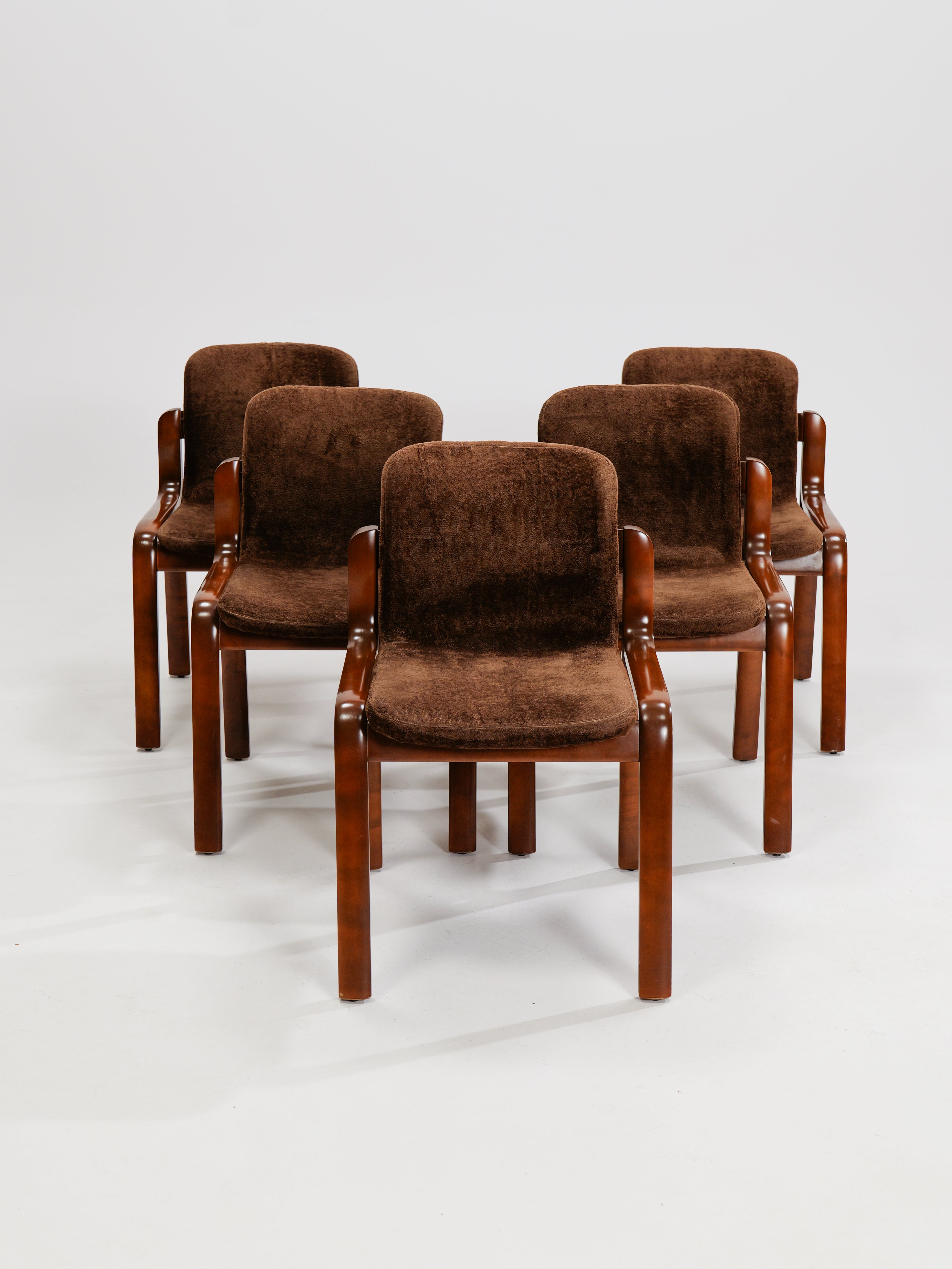 Set of 5 Italian Solid Wood with Plush Upholstery,1980s