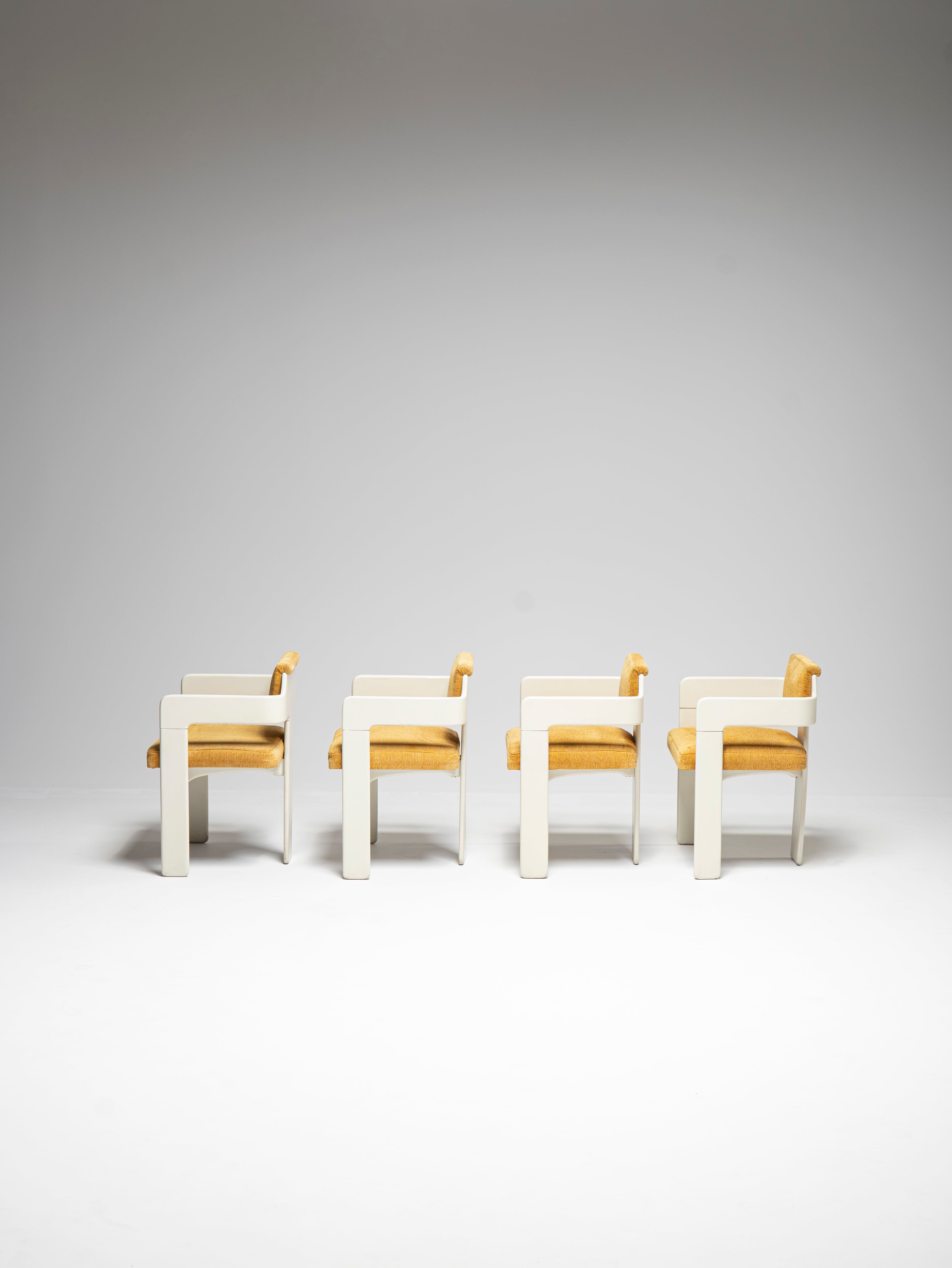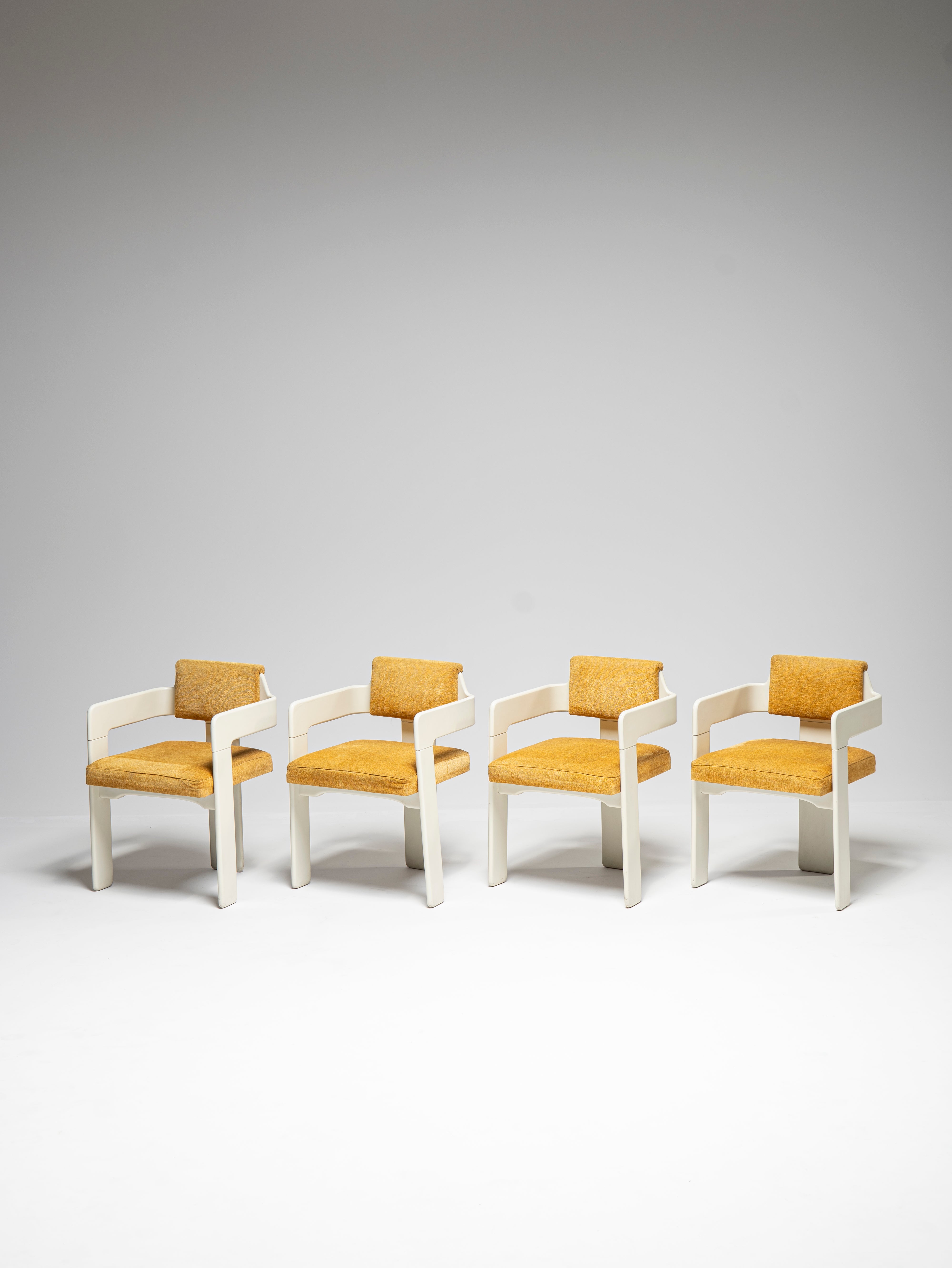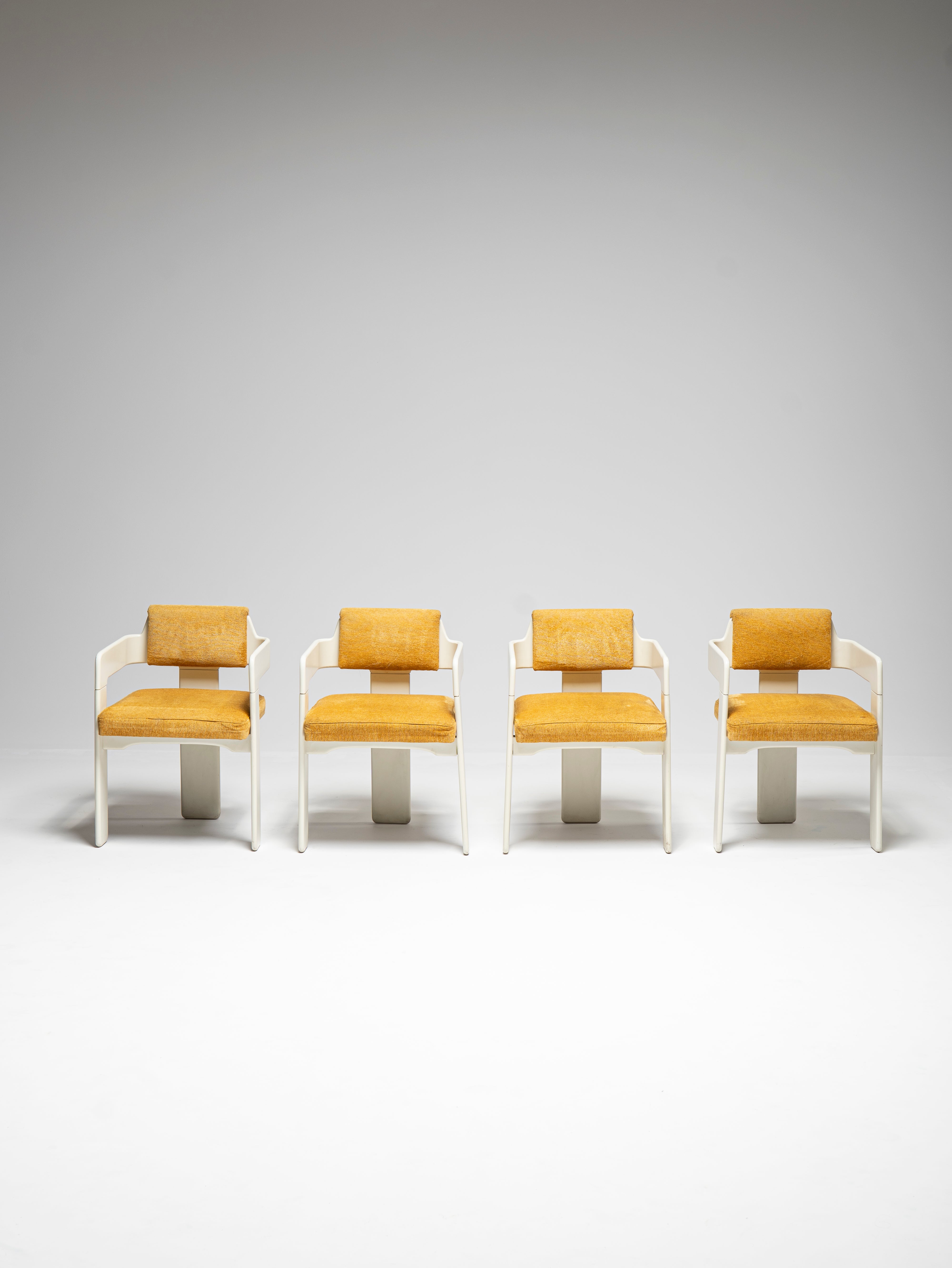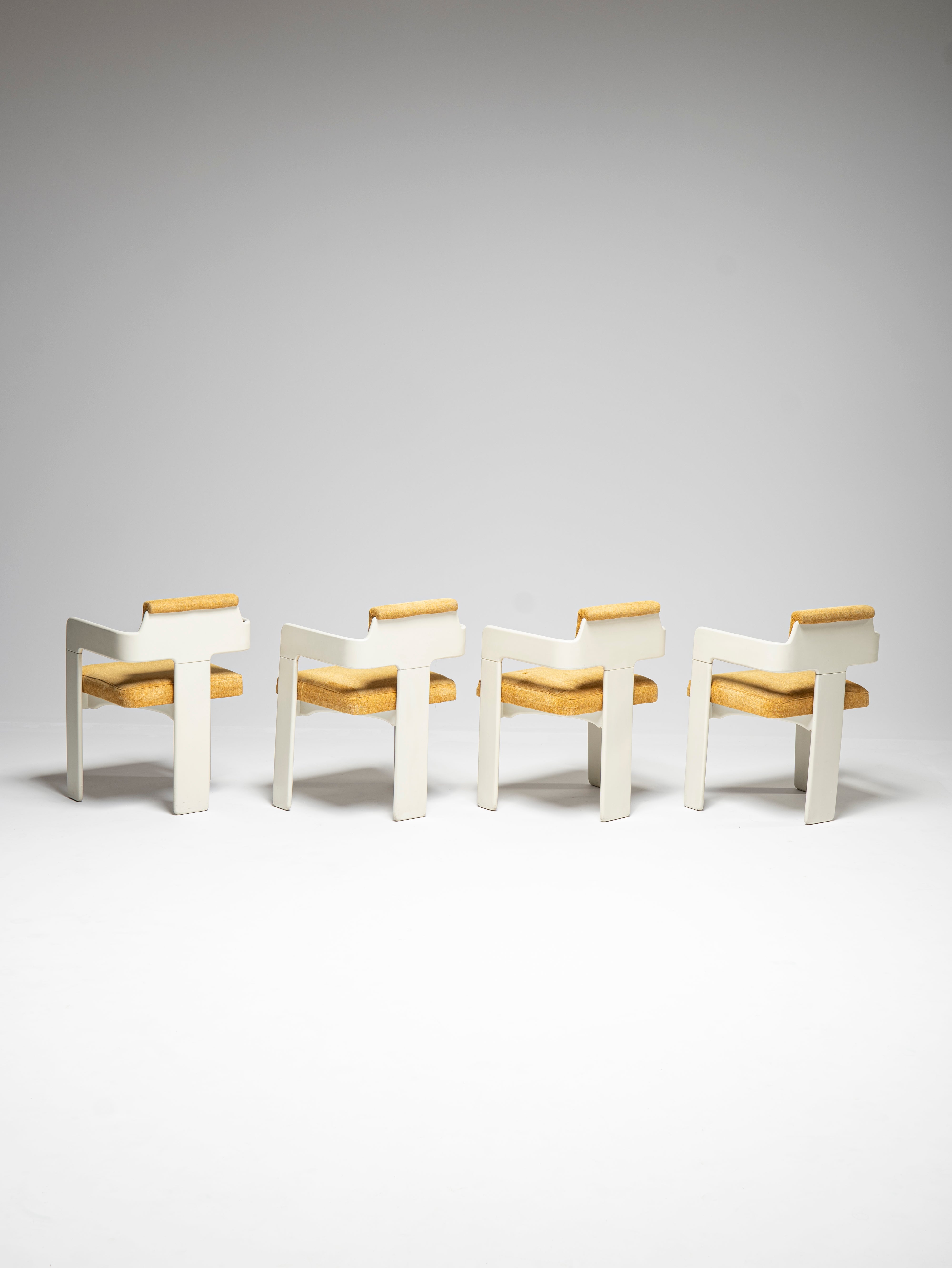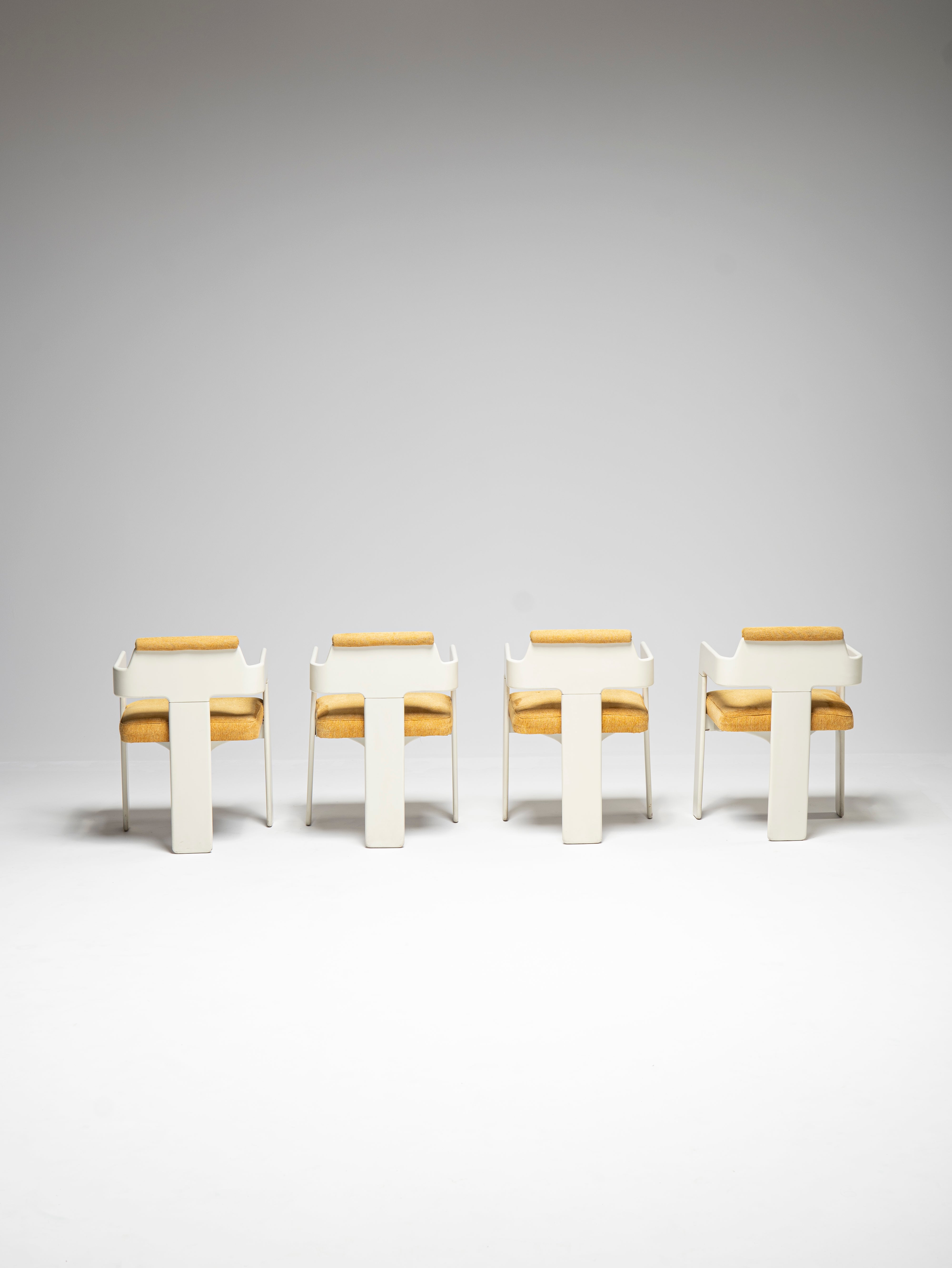 These four chairs are part of a larger set which also comprises a table, two coat racks and a trolley coffee table bar.